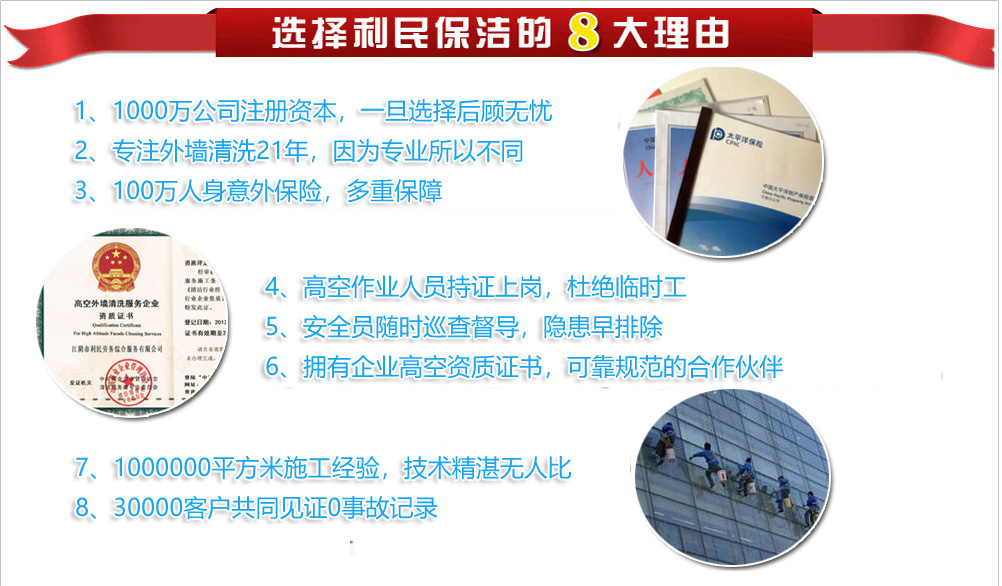 ![]() 利民,高空清潔行業(yè)的卓越領(lǐng)跑者。我們的外墻清洗業(yè)務(wù)包括:外墻清潔、外墻防水補漏、外墻涂料粉刷、LED樓體亮化工程高空安裝、外墻防水工程高空施工等系列高空作業(yè)項目,是物業(yè)公司、景觀工程公司、廣告公司、建筑、安裝公司、幕墻公司、各企事業(yè)單位等最佳高空作業(yè)服務(wù)專業(yè)供應(yīng)商.專業(yè)安全高效,承包高空外墻清洗,.專業(yè)的施工團隊,所有人員均持證上崗,高空人員均購買100萬保險,21年1000000平方的外墻清洗經(jīng)驗,優(yōu)質(zhì)的服務(wù)..[詳細(xì)] 經(jīng)典案例更多 >